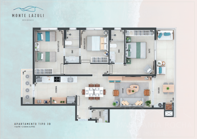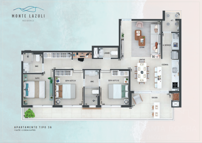 Opcional 2 demi-suítes + 01 suíte com 100, 102 e 111m² privativos